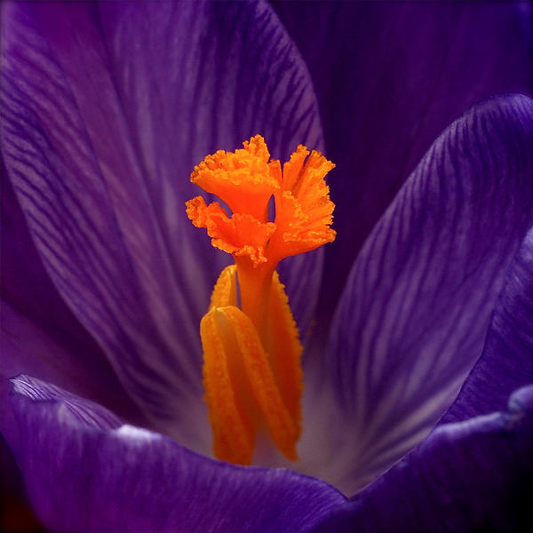 Interior Design ~ An abstract close-up photograph of a stunning purple and orange crocus flower. This is a square format... more