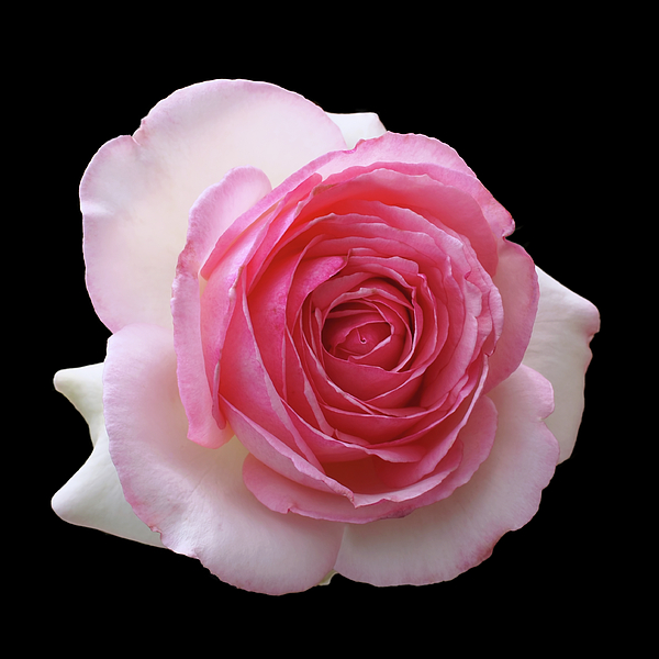 La Dolce Vita ~ A close-up square-format photograph of Rosa Dolce Vita. This beautiful hybrid tea rose has large double blooms of white petals edged in pink. Photographed at the Huntington Botanical Gardens in San Marino, California.