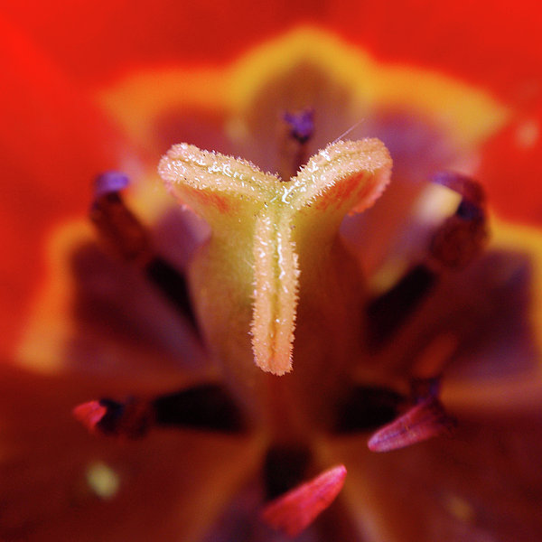 Red Tulip Abstract ~ A square-format close-up photograph of the interior of a beautiful red tulip.... more